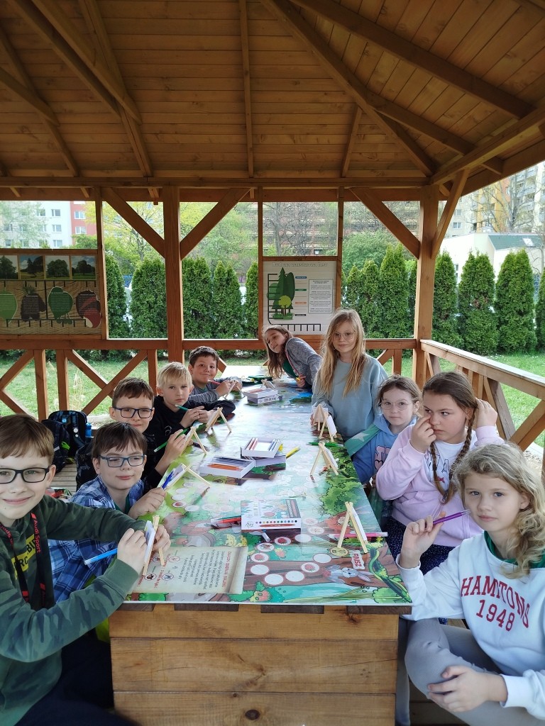 W piątek zamieniliśmy klasę na szkolne podwórko, gdzie inspiracją stała się budząca się do życia przyroda. Zieleń, pierwsze kwiaty i wiosenne światło trafiły na mini płótna w postaci pięknych pejzaży.