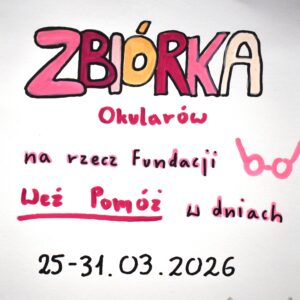 Wolontariusze kl. 5 serdecznie zapraszają do udziału w zbiórce używanych okularów korekcyjnych, przeciwsłonecznych czy samych oprawek w dniach 25-31.03.2026 na rzecz Fundacji „Weź Pomóż”. Jeśli macie w domu niepotrzebne okulary, które już nie używacie i leżą w szufladzie to zapraszamy do przyniesienia ich i wrzucenia w holu szkoły do oznaczonego pudełka „Zbiórka Okularów” w dniach…