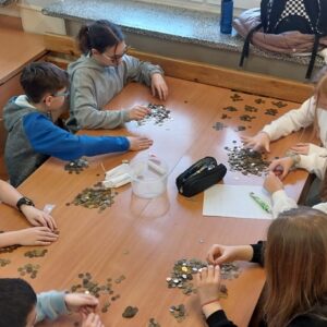 W miesiącach styczeń i luty wolontariusze kl. 5 prowadzili zbiórkę groszy w ramach akcji „Góra Grosza”na rzecz Towarzystwa Mój Dom. Celem akcji było zebranie funduszy na pomoc psychologiczną, rzeczową i specjalistyczną dla dzieci ,w szczególności wychowujących się poza własnym środowiskiem rodzinnym. Zebrane monety zostały policzone przez wolontariuszy, spakowane, zaniesione na Pocztę Polską i przekazane organizatorowi akcji Towarzystwu Nasz…