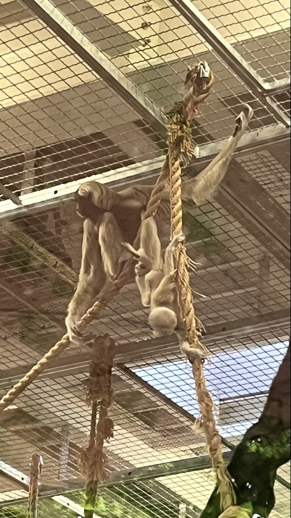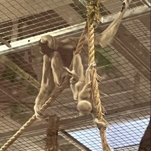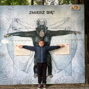 – Czy małpy jedzą banany? Okazuje się, że NIE, ponieważ gwałtowny wzrost poziomu cukru może być dla nich śmiertelny. To podobnie jak u ludzi nadmierne jedzenie słodyczy – nie jest wskazane! Pan Konrad w bardzo ciekawy sposób opowiadał nam również inne ciekawostki. Wiemy też, że małpy są świetnymi śpiewakami, że potrafią nitkować zęby, że świetnie tworzą różne narzędzia, aby zdobyć pokarm, że potrafią robić sobie selfie, że ……….