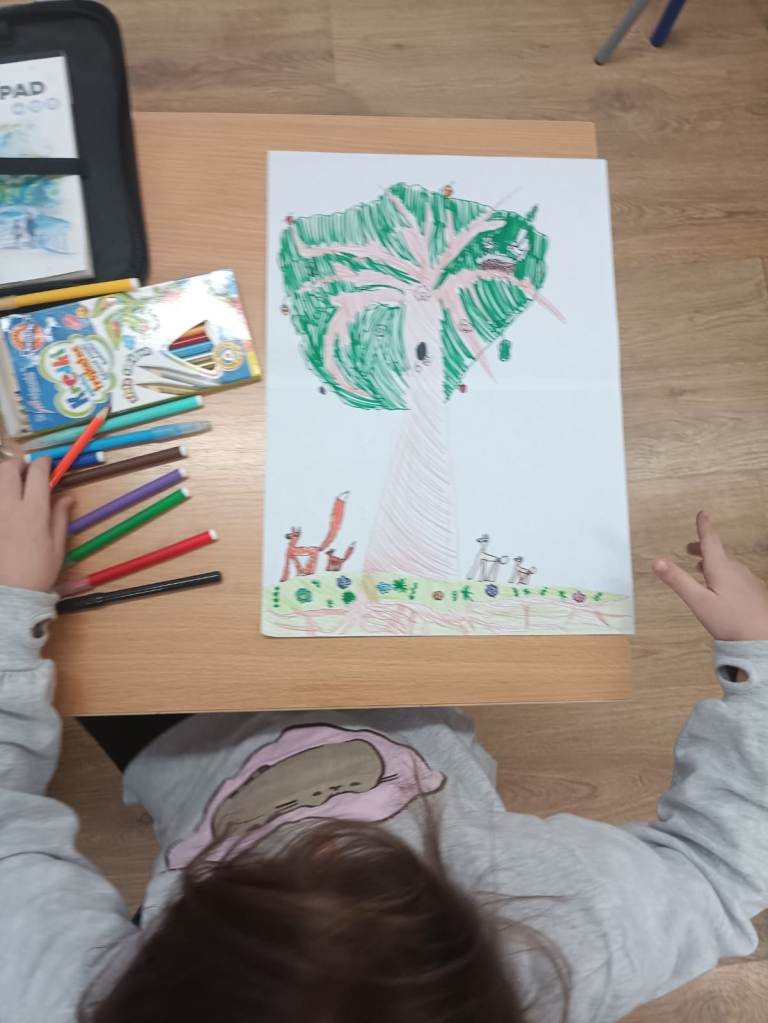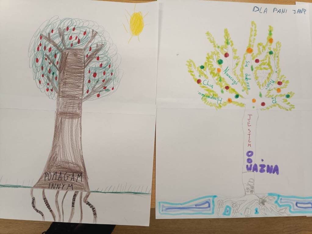 Każde drzewo było inne, tak jak każde dziecko jest wyjątkowe. Dzięki rysunkowi i kolorom dzieci mogły wyrazić swoje emocje, opowiedzieć o swoich doświadczeniach i odkryć, co w ich życiu jest dla nich ważne. Zajęcia pozwoliły również rozwijać samoświadomość, empatię oraz umiejętność dzielenia się swoimi refleksjami z innymi.