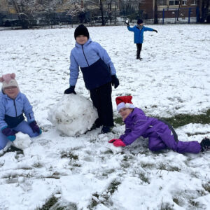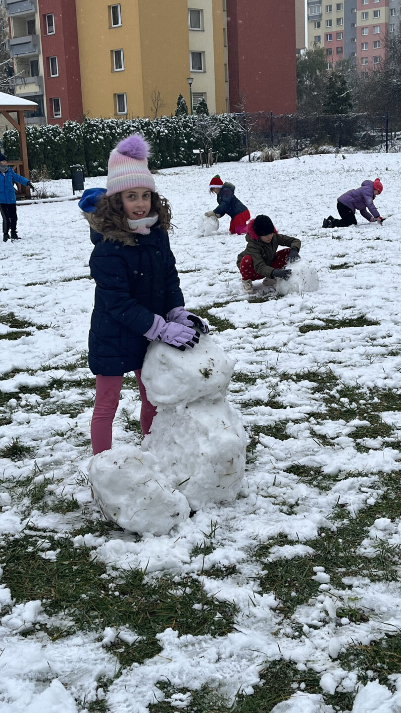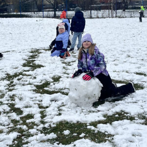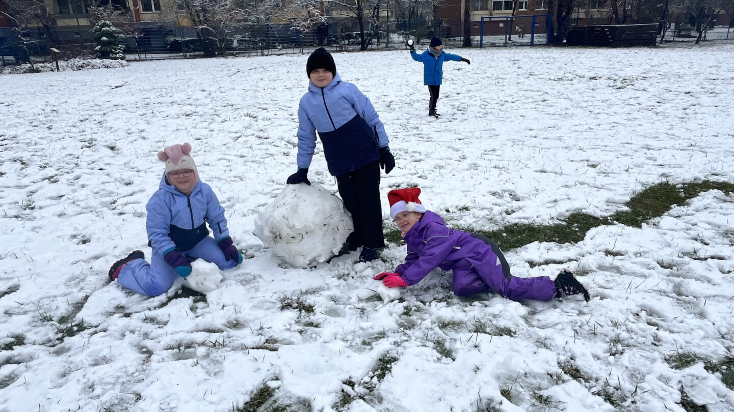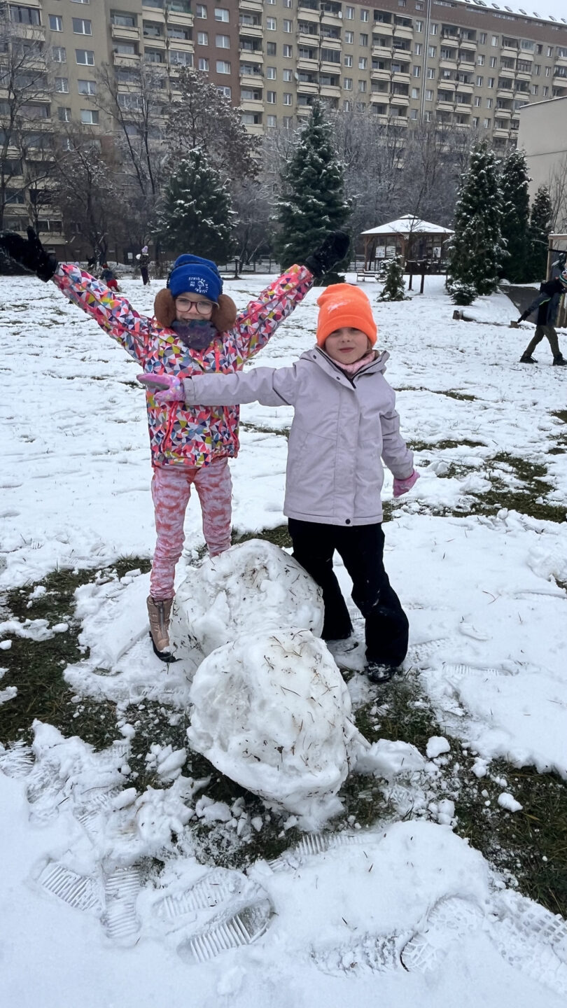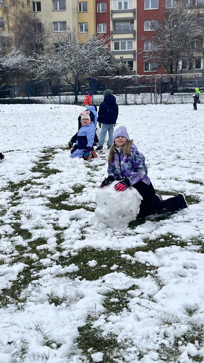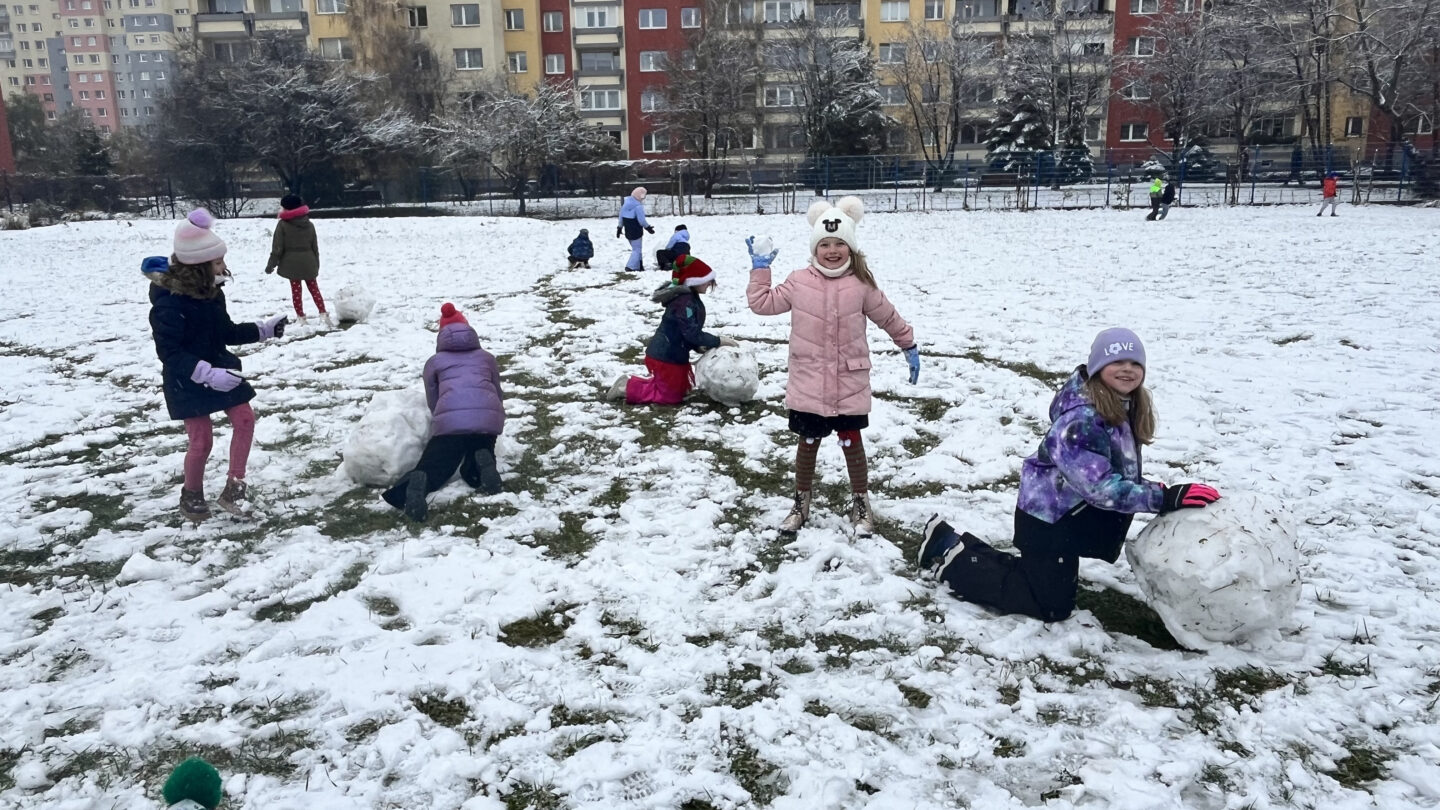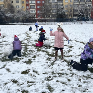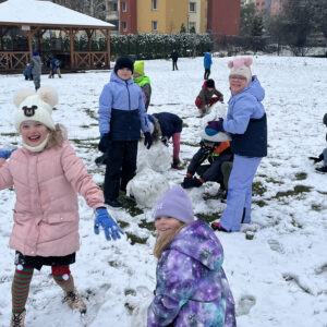 To był cudowny czas – śmiech podczas zabaw ruchowych nie znikał z twarzy. Wszyscy bardzo aktywnie lepili białe kule tocząc je do siebie, aby powstały śnieżne figury. Zabawa w zimowej scenerii to był strzał w dziesiątkę.