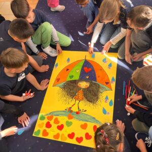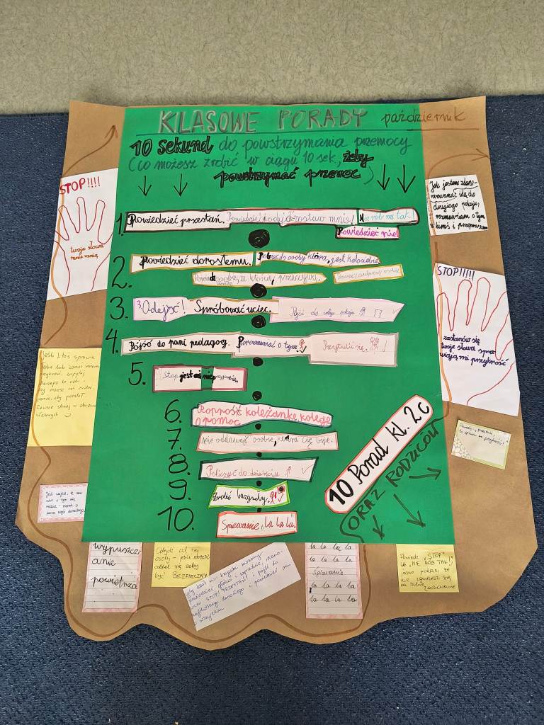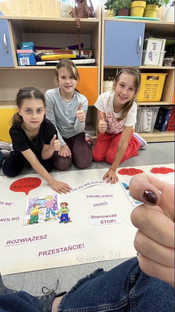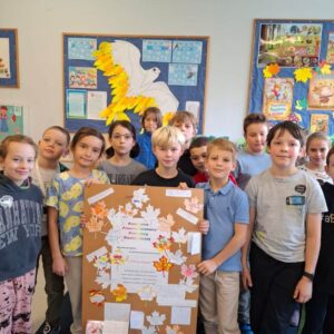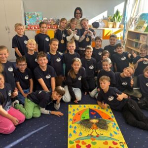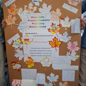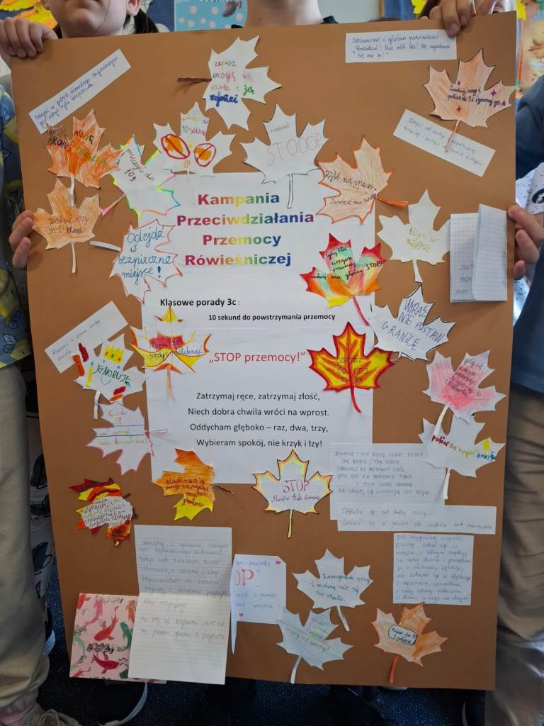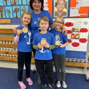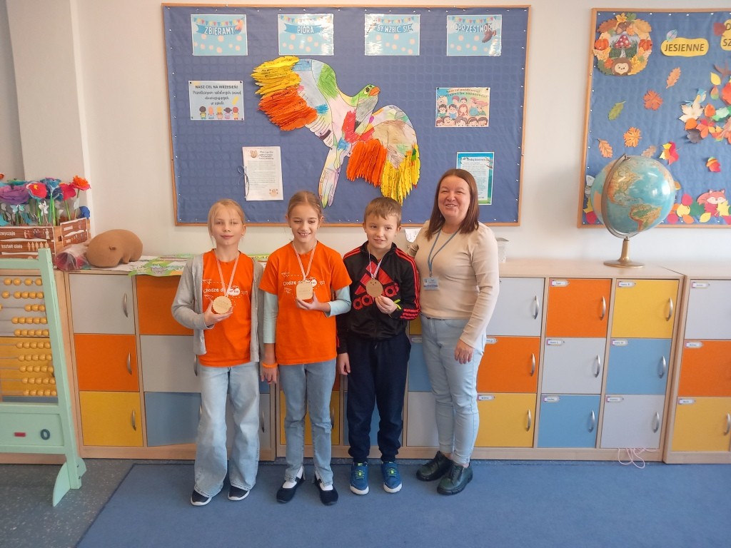 W październiku uczniowie klas 2-3 brali udział w apelach i zajęciach, których celem była nauka zachowań mających przeciwdziałać przemocy rówieśniczej oraz propagować pozytywne relacje. W ramach Małej Ligi Klas dzieci wraz z nauczycielami przygotowały plakaty ukazujące, co możemy zrobić, by w ciągu 10 sekund powstrzymać przemoc. Do zadania zostali włączeni także Rodzice – bardzo dziękujemy za wsparcie i zaangażowanie. Efekty i porady uczniów można podziwiać w holu szkoły. Na zakończenie miesiąca w każdej z klas zostali wybrani medaliści w kategoriach: Superbohaterów Trudnych Sytuacji, Ambasadorów Dobrej Atmosfery oraz Superwytrwałych Bohaterów. Wszystkim nagrodzonym gratulujemy.