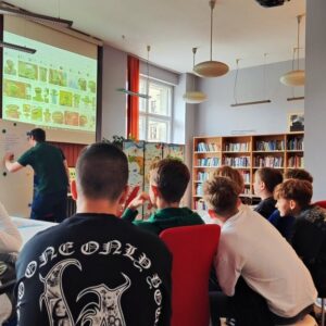 W dniu 21 maja klasa 6e odwiedziła American Corner mieszczący się w Dolnośląskiej Bibliotece Publicznej na wrocławskim Rynku. Uczniowie wzięli udział w ciekawych zajęciach prowadzonych przez native speakera z USA. Tematem spotkania były Stany Zjednoczone – ich geografia oraz codzienne życie. Uczniowie mieli okazję posłuchać autentycznego języka angielskiego i zadać pytania dotyczące m.in. amerykańskich potraw…