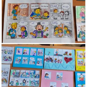 Na lekcjach języka angielskiego w klasie 5d realizowana jest innowacja pedagogiczna, w ramach której uczniowie uczą się co miesiąc jednego wierszyka. To nie tylko doskonały sposób na rozwijanie pamięci i językowych umiejętności, ale również okazja do zabawy słowem i obrazem. W tym miesiącu uczniowie zamienili poznany wierszyk w… komiks! Przygotowane wcześniej rysunki zostały przez nich…