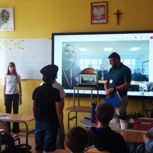 Miło nam poinformować, że w dniu dzisiejszym miało miejsce połączenie on-line klasy 6c z klasą partnerską z Wielkiej Brytanii. Podczas spotkania nasze klasy prezentowały swoich patronów – Bolesława Orlińskiego oraz Świętego Czada, średniowiecznego misjonarza krajów anglosaskich, który jest patronem szkoły partnerskiej.