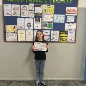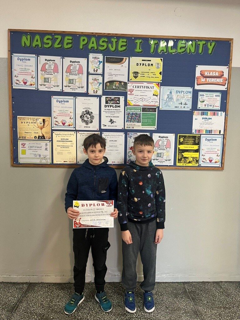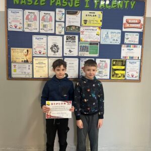W Miejskim Turnieju Mikołajkowym wraz z kolegą Aleksandrem Żabickim 3a zajęli I miejsce, a ich koleżanka Zofia Noga 3a zajęła II miejsce.