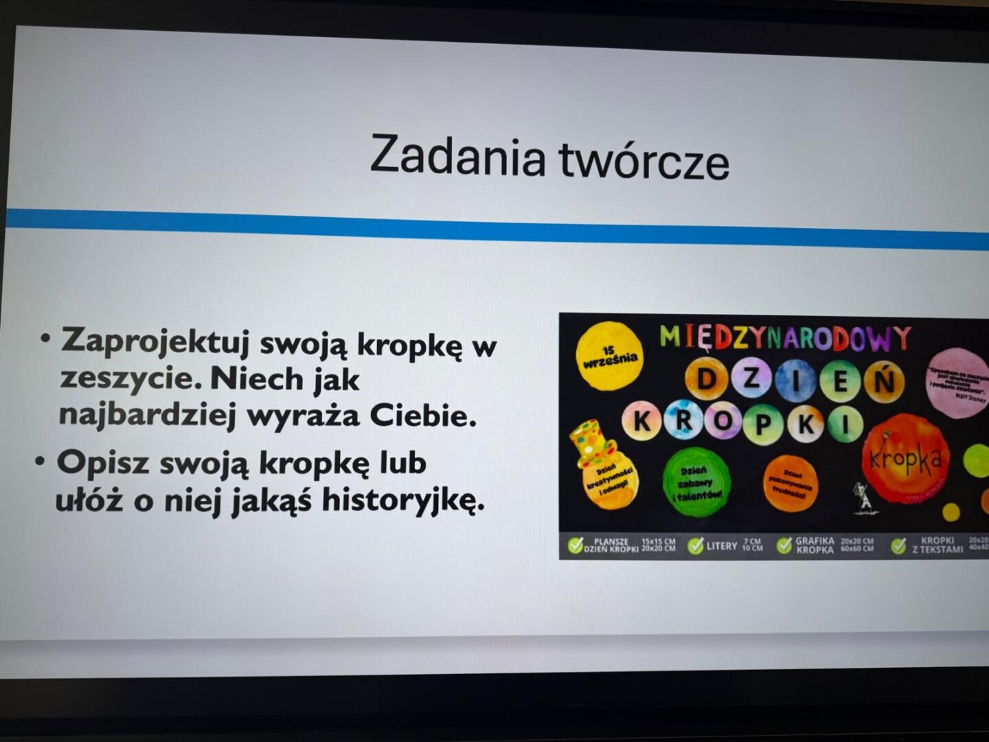 Z przyjemnością informujemy, że z okazji Międzynarodowego Dnia Kropki nasi uczniowie uczestniczyli w kreatywnych zajęciach, m.in. na lekcjach języka polskiego. Dzieci tworzyły różnorodne prace inspirowane kropką, rozwijając swoje umiejętności literackie i artystyczne.