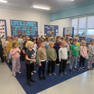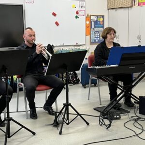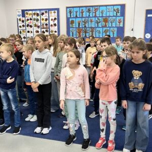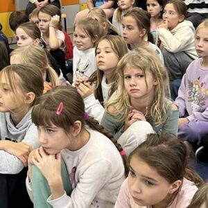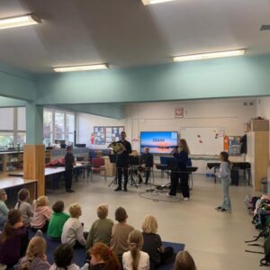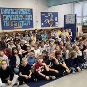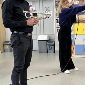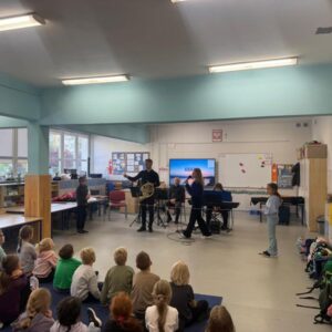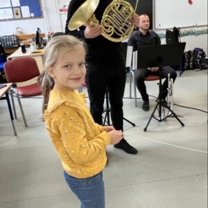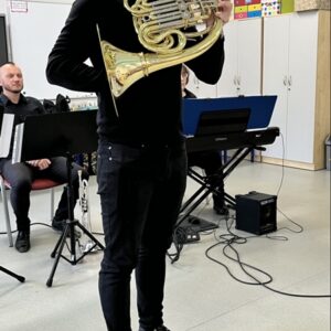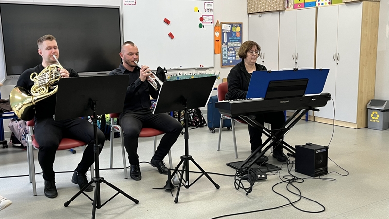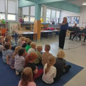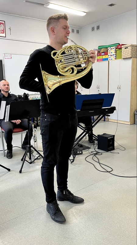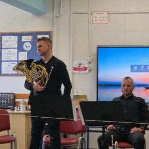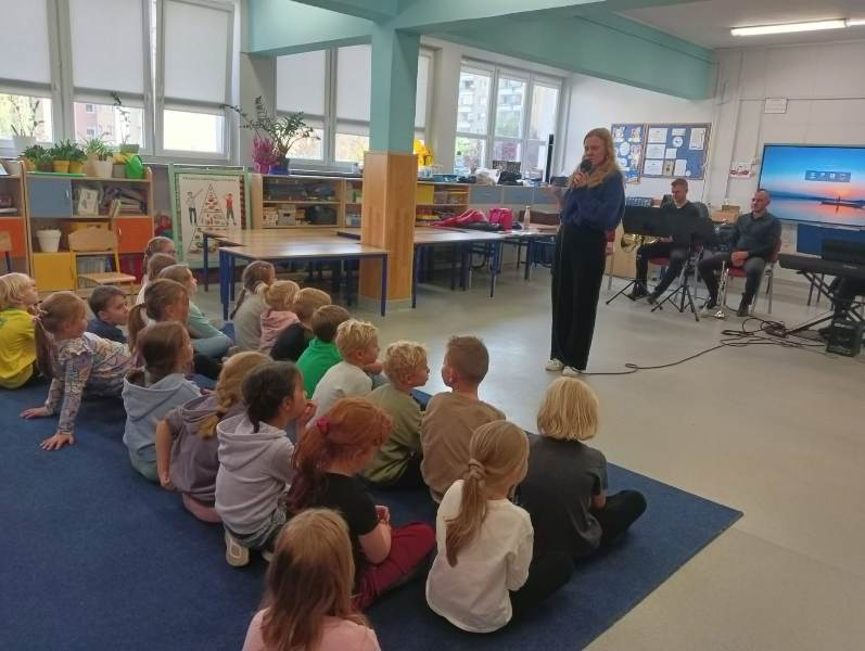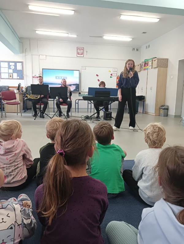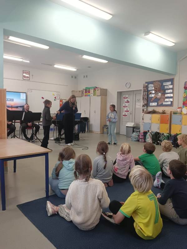 We wtorek pierwsza grupa uczniów z klas 1-3 uczestniczyła w spotkaniu z cyklu „Wyjazdowe audycje muzyczne”. Uczniowie mieli okazję wybrać się w niezwykłą podróż z muzykami Narodowego Forum Muzyki. Spotkanie było poświęcone instrumentom dętym blaszanym – takim jak trąbka i waltornia, którym dało też wsparcie pianino elektryczne. Uczniowie poznali historię, budowę oraz brzmienie tych instrumentów. Wysłuchaliśmy kilku utworów, ale Muzyczny galimatias Mozarta oraz hymn naszego ukochanego miasta rozbudził naszą wrażliwość muzyczną!
