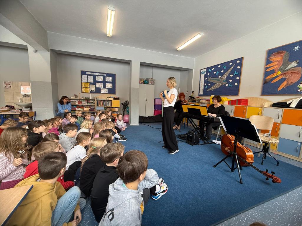 Podczas koncertu muzycznego pt. ,,O czym opowiada muzyka”- uczniowie mieli możliwość poznać jakich środków wyrazu kompozytorzy używają, by odmalować przyrodę, postaci danego dzieła lub dziecięcą zabawę! Sprawdzili ponadto jaką rolę odgrywa rytm, melodia i artykulacja w charakterze kompozycji.