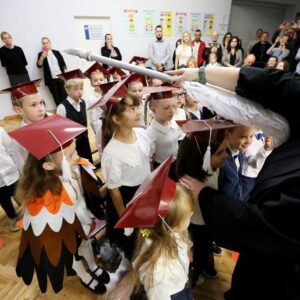 14 października w naszej szkole odbyła się uroczystość Pasowania na Ucznia Orlińskiego. Pierwszoklasiści złożyli uroczyste ślubowanie przed pocztem sztandarowym, obiecując być dobrymi uczniami i Polakami. Następnie Pani Dyrektor symbolicznie pasowała każdego z nich piórem, przyjmując do grona uczniów naszej szkoły.