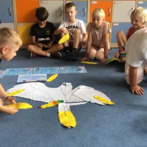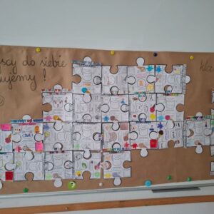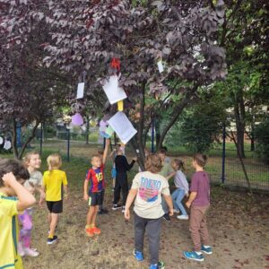 Pierwsze dni września w naszej szkole były czasem niezwykle intensywnym, pełnym aktywności, wspólnej pracy, refleksji i marzeń. To wyjątkowy początek roku szkolnego, który pokazał, jak wiele możemy osiągnąć, gdy działamy razem, dzielimy się swoimi pomysłami i wzajemnie inspirujemy. W klasach 1–3 uczniowie opracowywali swoje cele na nowy rok szkolny. Rozmawiali o tym, co jest dla nich ważne, jakie umiejętności chcieliby rozwijać i czego chcą się nauczyć. Wszystko po to, aby – podobnie jak sokół z inspirującej bajki – móc wznieść się wysoko i z odwagą sięgać po marzenia. Pierwszy tydzień to także ważne spotkanie ze strażnikiem miejskim – panem Marcinem Marcinkowskim, podczas którego uczniowie utrwalili zasady bezpiecznego zachowania w drodze do szkoły i w różnych codziennych sytuacjach. Była to okazja, by w praktyczny sposób przypomnieć, jak troszczyć się o swoje bezpieczeństwo oraz innych. Nie zabrakło także działań integracyjnych i organizacyjnych – wybraliśmy trójki klasowe, a uczniowie otrzymali swoje pierwsze zadanie w ramach szkolnej „małej ligi klas”. Współpraca, odpowiedzialność i zaangażowanie stały się początkiem nowych wyzwań, które będą nam towarzyszyć przez cały rok. Szczególne miejsce w tym czasie zajęły również obchody Dnia Marzyciela. Uczniowie klas 2–3 spisali swoje marzenia i zawiesili je na drzewku życzeń, które stało się wyjątkową przestrzenią pełną nadziei, wiary i dobrych myśli. To symboliczne działanie pokazało, jak ważne jest zatrzymanie się na chwilę, refleksja i spojrzenie na świat z perspektywy dobra i pozytywnych wartości. Klasa 2c podjęła dodatkowo temat wolontariatu. Podczas zajęć dzieci poznały pojęcia takie jak: wolontariat, wolontariusz, dobroczynność czy bezinteresowna pomoc. Pracując w grupach, zastanawiały się, jakie działania mogłyby być zorganizowane w naszej szkole, aby wspierać innych i budować wspólnotę opartą na życzliwości i trosce. Była to cenna lekcja empatii i odpowiedzialności za innych. Pierwsze dni w szkole okazały się więc nie tylko czasem nauki i pracy, ale także budowania więzi, odkrywania wartości, wspólnego marzenia i planowania. To właśnie takie doświadczenia pokazują, że szkoła jest miejscem, w którym można rozwijać się wszechstronnie – intelektualnie, społecznie i emocjonalnie. Serdecznie dziękujemy wszystkim nauczycielom i wychowawcom, którzy zaangażowali się w przygotowanie tych wyjątkowych i inspirujących dni. Dzięki nim uczniowie mogli poczuć, że wspólna praca i wzajemne wsparcie dają ogromną siłę i pozwalają uwierzyć, że marzenia naprawdę mogą się spełnić Serdecznie dziękujemy nauczycielom i wychowawcom za przygotowanie tych inspirujących dni. Wierzymy, że nasze marzenia się spełnią.