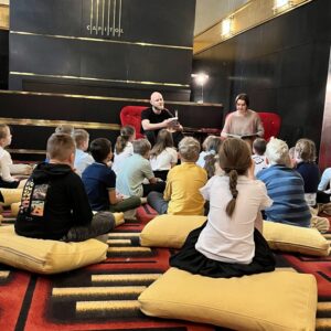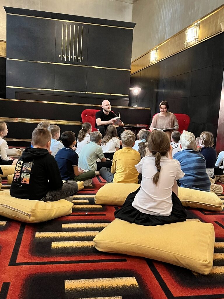 W ramach Ogólnopolskiego Projektu Edukacyjnego Klasa w Terenie uczniowie klasy 2d uczestniczyli w warsztatach literackich: Czytanie na dywanie organizowanych przez Teatr Capitol. Mieli okazję poznać pracę artystów z innej strony, tym razem nie aktorskiej, a lektorskiej. Wysłuchali fragmentów lubianej książki – Dzieci z Bullerbyn w dwóch językach: polskim i ukraińskim. Było to wspaniałe przeżycie! Warsztaty pozwoliły na rozwijanie wyobraźni i pozytywnego skojarzenia z czytaniem. Polecamy wszystkim tego typu warsztaty