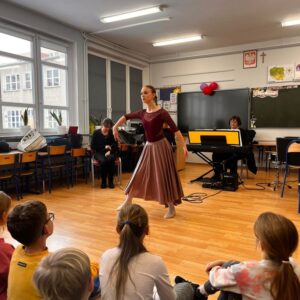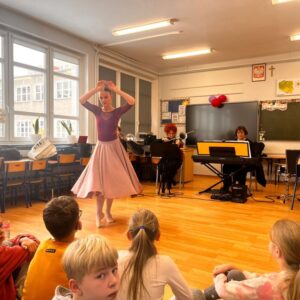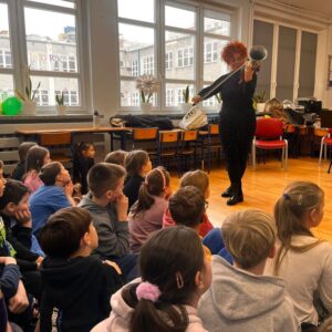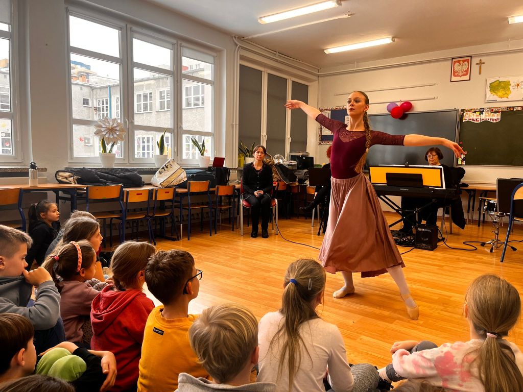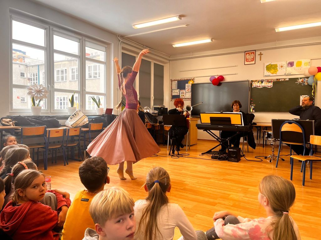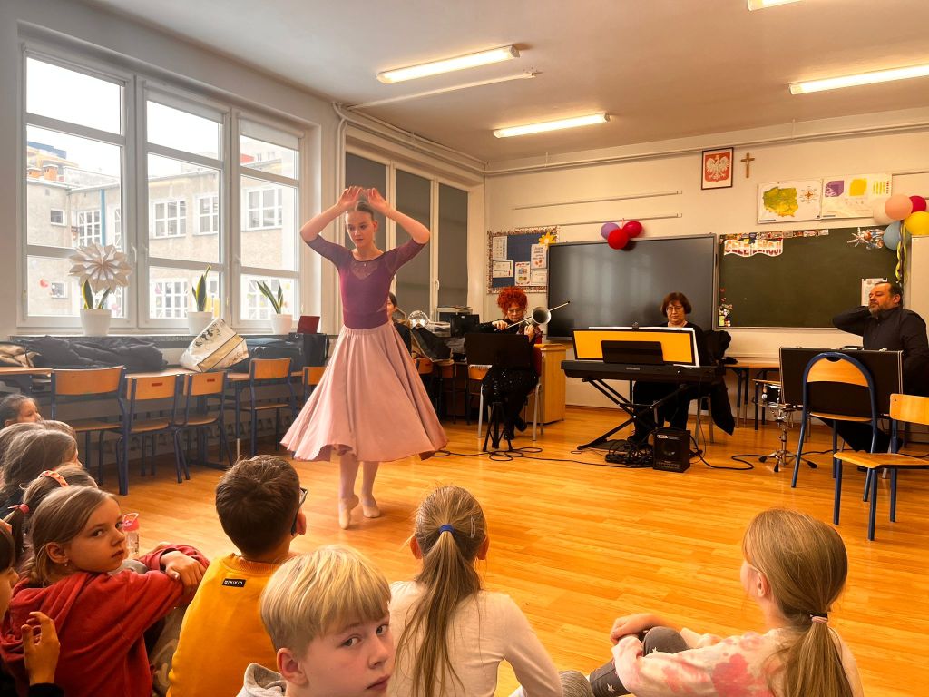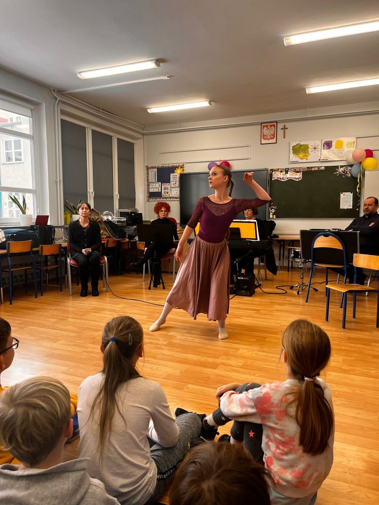 Uczniowie klasy 3c i 3d w styczniu wzięli udział w wyjazdowej audycji muzycznej w ramach współpracy z Forum Muzyki. Ich oczy i uszy przeżyły inspirująca przygodę. Uczniowie wysłuchali fascynującej opowieści o Alicji z Krainy Czarów, obejrzały niezwykły pokaz tańca oraz miały możliwość zapoznać się z budową, wyglądem i dźwiękiem wyjątkowego instrumentu, jakim jest SKRZYPOTRĄBA. Takie spotkanie ze sztuką to pełne muzycznych, cudownych wrażeń chwile.