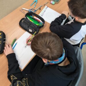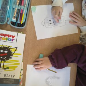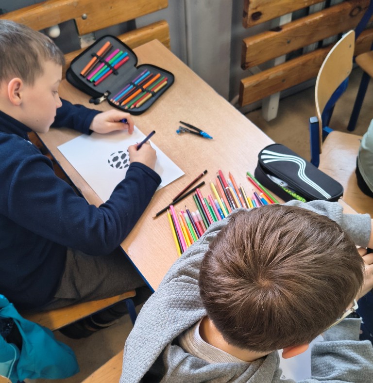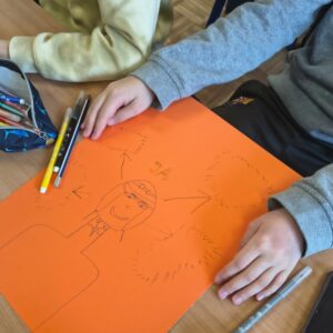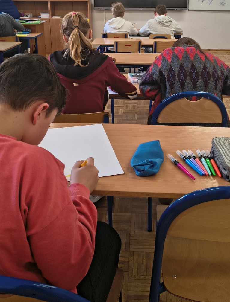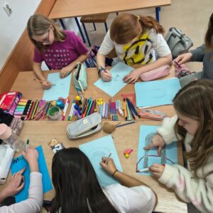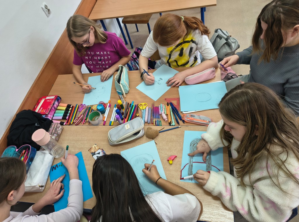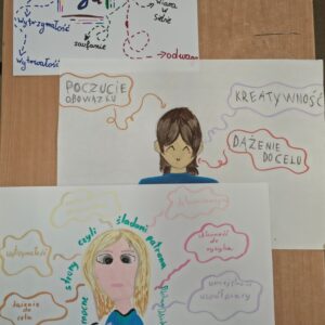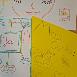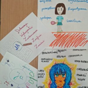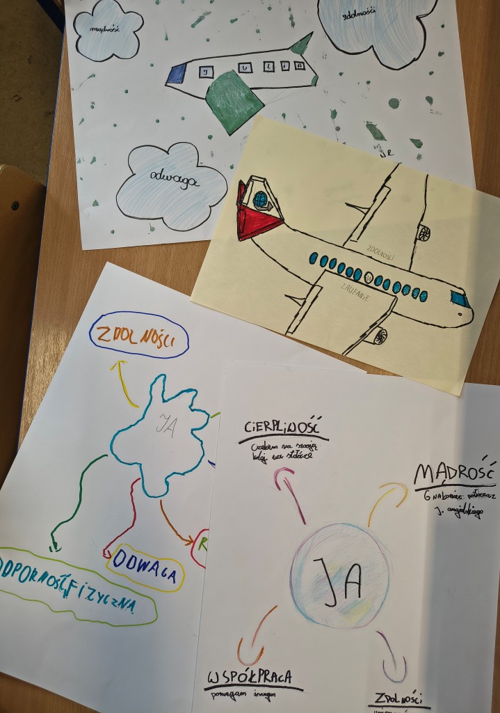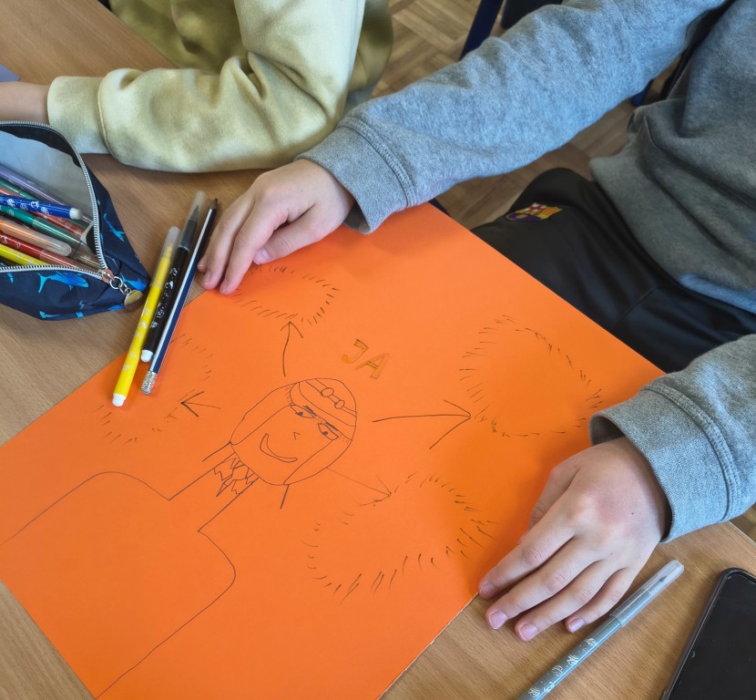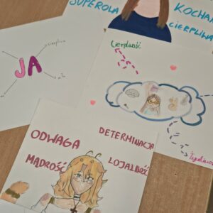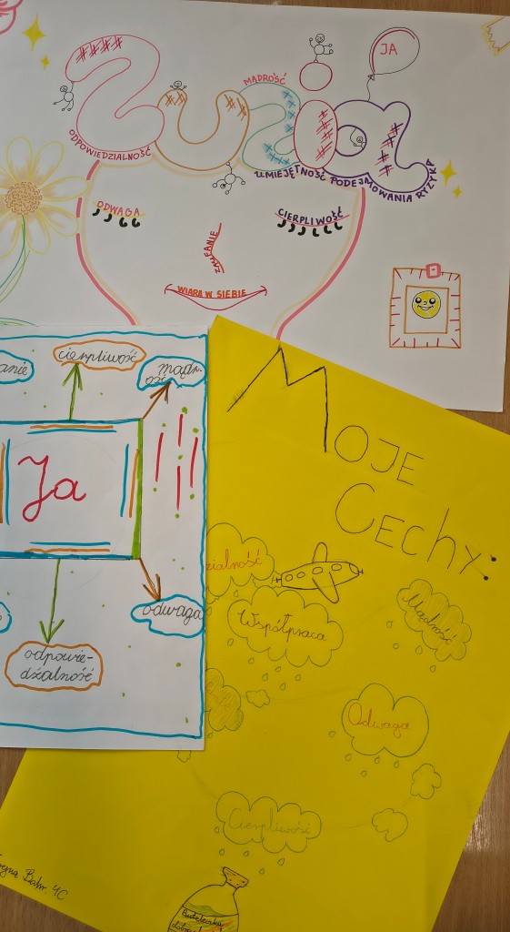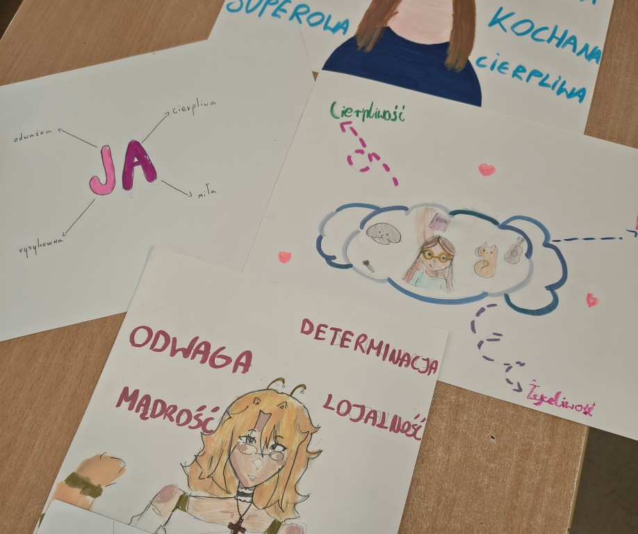 Podczas zajęć każdy uczeń indywidualnie tworzył plakat inspirowany cechami naszego Patrona, jednocześnie odkrywając swoje własne talenty, wartości i mocne strony. To była niezwykła podróż w głąb siebie – pełna refleksji, kreatywności i pozytywnej energii.