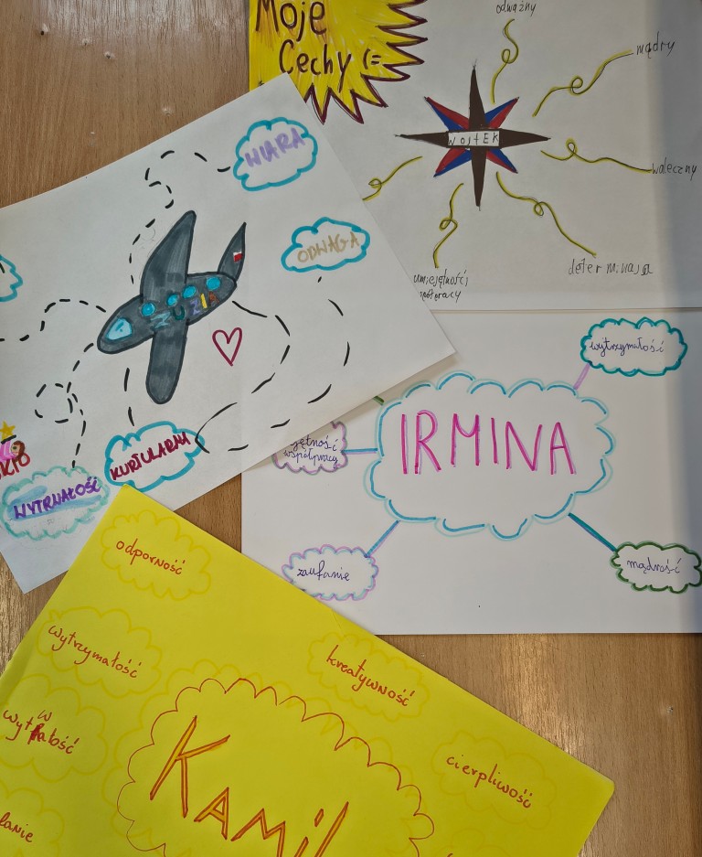 Odporność psychiczna jest dziś niezwykle ważną umiejętnością, ponieważ pomaga radzić sobie z wyzwaniami i trudnościami, dlatego podczas zajęć szczególnie skupiliśmy się na odkrywaniu i wzmacnianiu cech, które pozwalają ją budować. Inspirując się odwagą, wytrwałością i determinacją naszego Patrona, uczniowie mogli zobaczyć, że te same wartości są fundamentem silnego charakteru i wewnętrznej siły.
