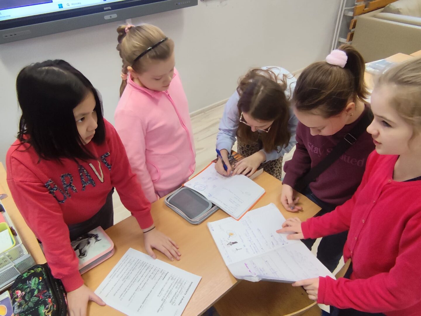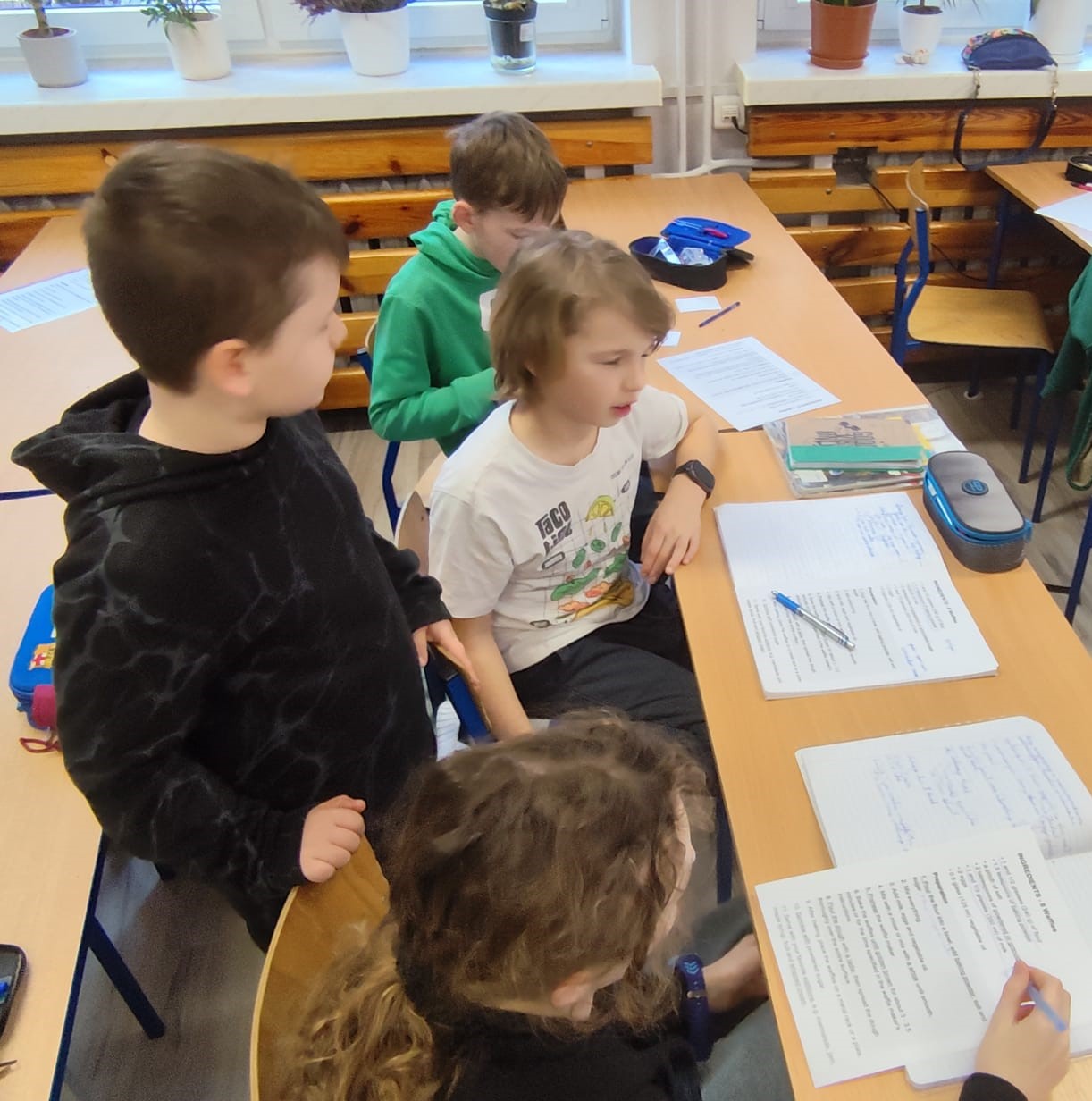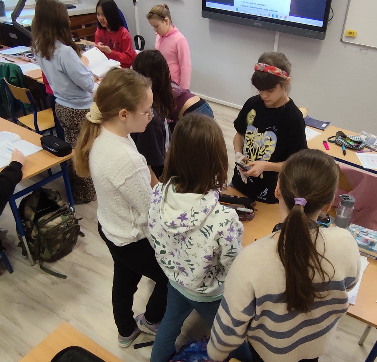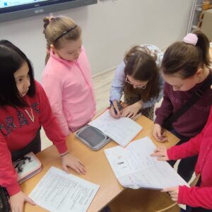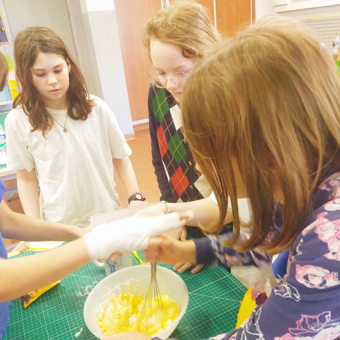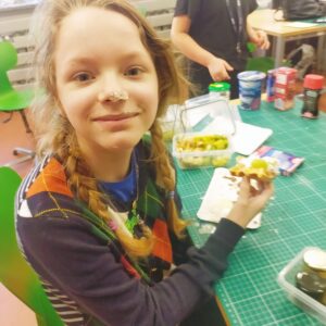 Uczniowie klasy czwartej w ramach programu nauczania j. angielskiego poznają m.in. nazwy produktów spożywczych. Wprowadzane jest również słownictwo związane ze sprzętami kuchennymi gotowaniem oraz przepisy kulinarne na proste dania. W ramach zajęć poznawaliśmy m.in. przepis na gofry, który to uczniowie klasy 4e postanowili wypróbować w praktyce. Podzieliliśmy się na grupy i korzystając z tego, iż w naszej szkole jest specjalna sala do gotowania wyposażona w sprzęt kuchenny, dzieci ochoczo przystąpiły do działania i przygotowały ”waffles” wg przepisu w j. angielskim. Nie zabrakło dodatków takich jak maple syrup, strawberries, bluberries, whipped cream and sprinkles. Sądząc po minach jedzących (fotorelacja poniżej) oraz tempie w jakim gofry znikały z talerzy, można uznać, co zresztą przyznali sami uczniowie, że była to: ”the most delicious English lesson”.
