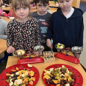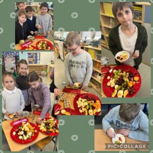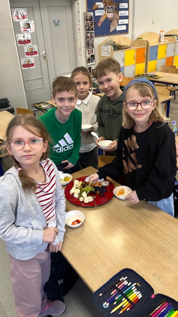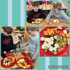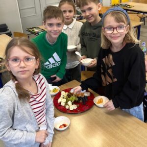 W dniu dzisiejszym uczniowie klasy 2d promując zdrowy styl życia w szkole oraz realizując zadanie projektu Matematyka na świecie – moduł Matematyka w kuchni, utrwalali w praktyce pojęcia związane z jednostkami masy i pojemności – wykonując sałatkę owocową! Zastosowali również w praktyce podział owoców na części – całość, połowa, ćwierć! Mieli też możliwość określić ich masę przy użyciu wagi szalkowej. Oczywiście podczas podsumowania zajęć nastąpiła degustacja ulubionych owoców! Było SMACZNIE! Polecamy tego typu działania praktyczne! Mam nadzieję, że to były zajęcia, które zachęciły również uczniów do spożywania owoców jako źródła zdrowia