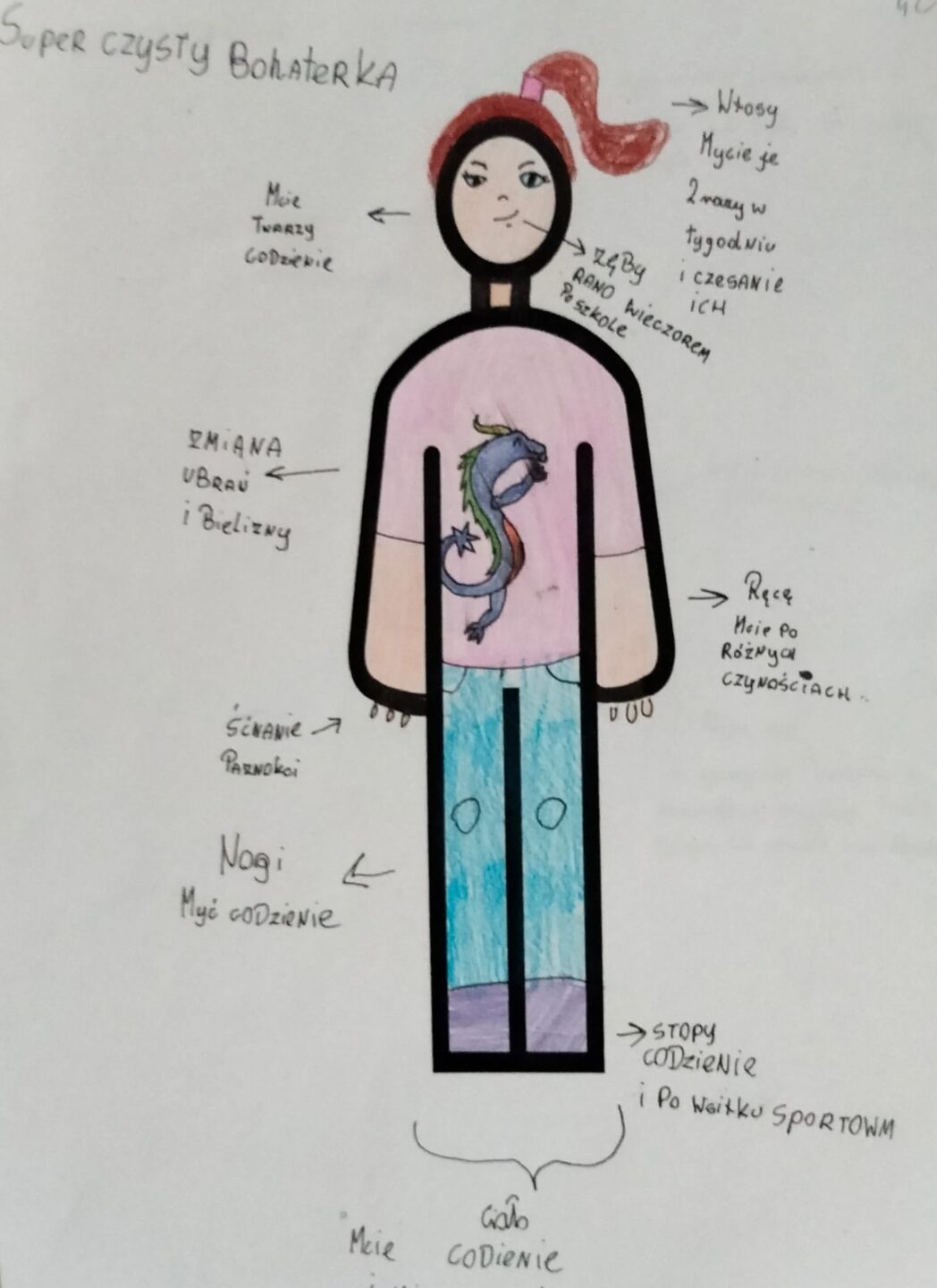 Nasi czwartoklasiści podczas zajęć z edukacji zdrowotnej tworzyli własnych superczystych bohaterów i poszerzali swoją wiedzę na temat higieny osobistej.
