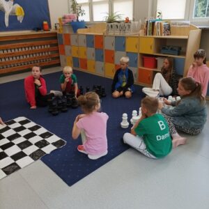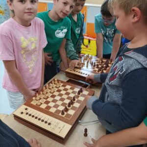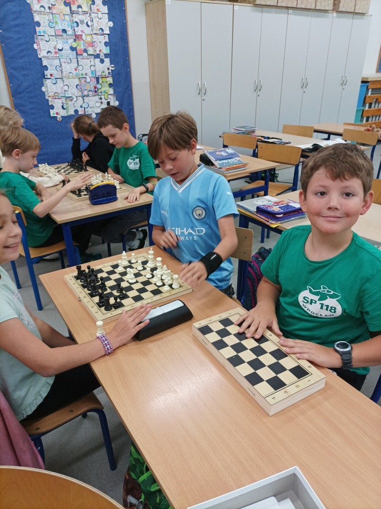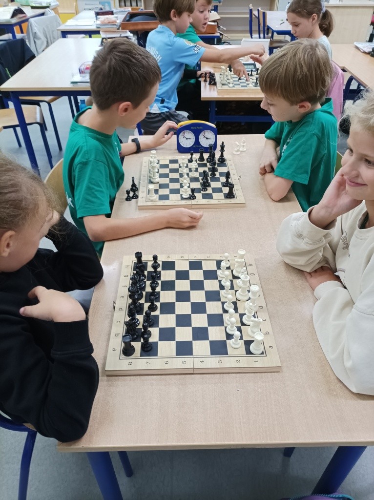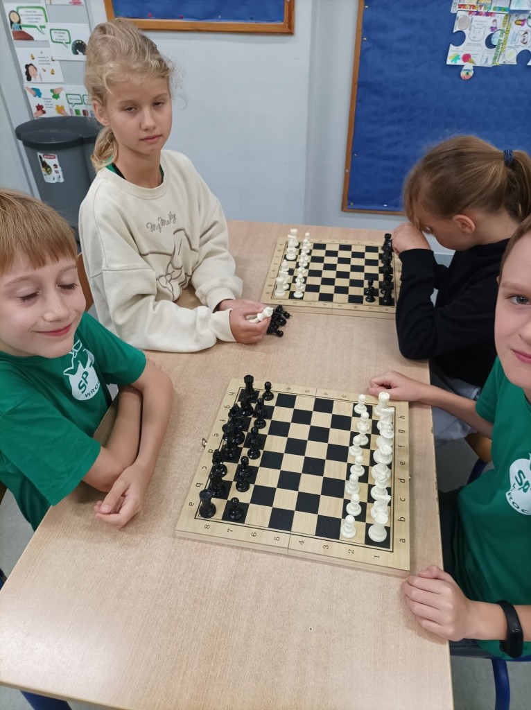Od początku września uczniowie klasy 3 b tradycją poprzedniego roku rozszerzają i wzbogacają swoją wiedzę w grze w szachy, poznają nowe techniki gry w szachy pod nadzorem p. Michała Chmielarza – taty jednego z naszych uczniów. Zajęcia te odbywają się 2 razy w tygodniu przez cały wrzesień.