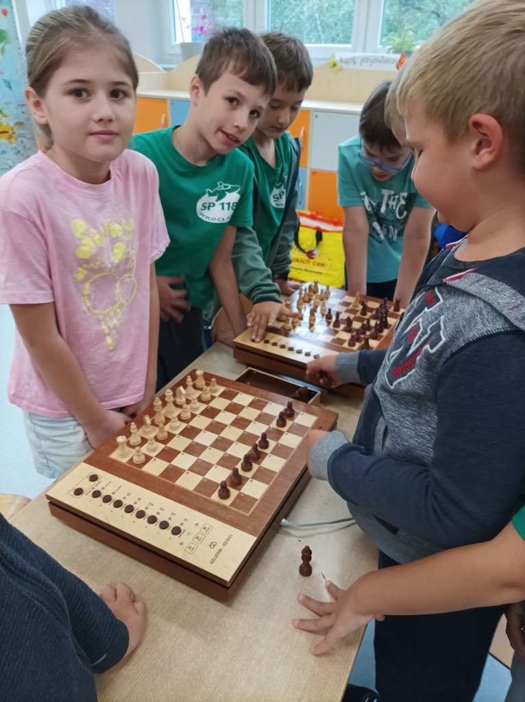 Uczniowie mają okazję zagrać w szachy pod opieką i wskazówkami znakomitego mistrza szachowego, a zarazem wspaniałego nauczyciela szachów. Wiedza ta nie idzie na marne, bo dzieci coraz lepiej rozgrywają kolejne partie szachów wzbogacone o nowe manewry szachowe. Kto wie? Może pan Michał Chmielarz będzie miał w przyszłości swojego zastępcę, który będzie zarażał innych swoją pasją, podobnie jak tato naszego ucznia. Dziękujemy p. Michale za chęć dzielenia się z młodym pokoleniem swoją pasją i za poświęcony czas.