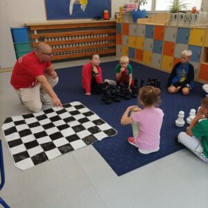 Pan Michał dzięki swojej pasji, cierpliwości i mocnemu zaangażowaniu w temat, w bajkowy sposób przekazuje rzetelną i przystępną dla dzieci wiedzę szachową.
