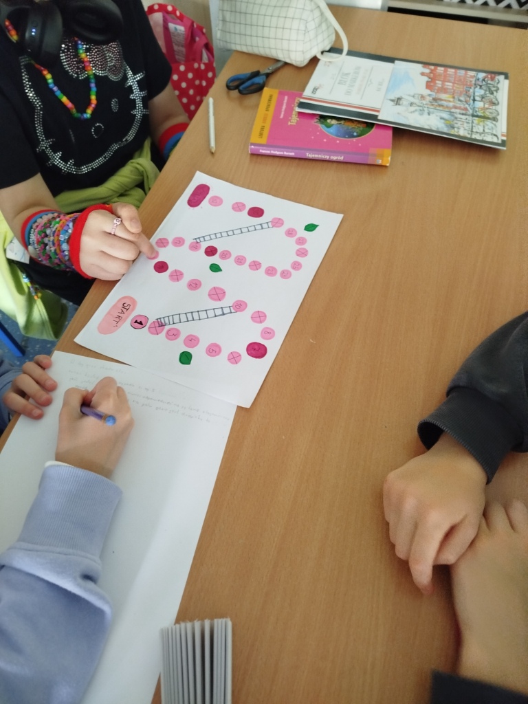 W maju na lekcjach języka polskiego klasy 5c i 5d tworzyły gry na podstawie przeczytanych lektur – „Ani z Zielonego Wzgórza” i „Tajemniczego ogrodu”. Następnie uczniowie poznawali zasady i grali w gry przygotowane przez kolegów. Była to wspaniała okazja do powtórzenia treści lektur.