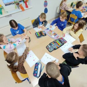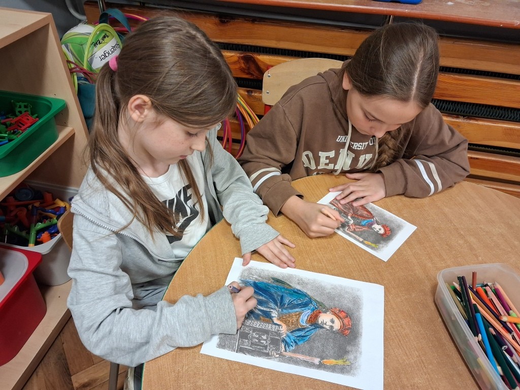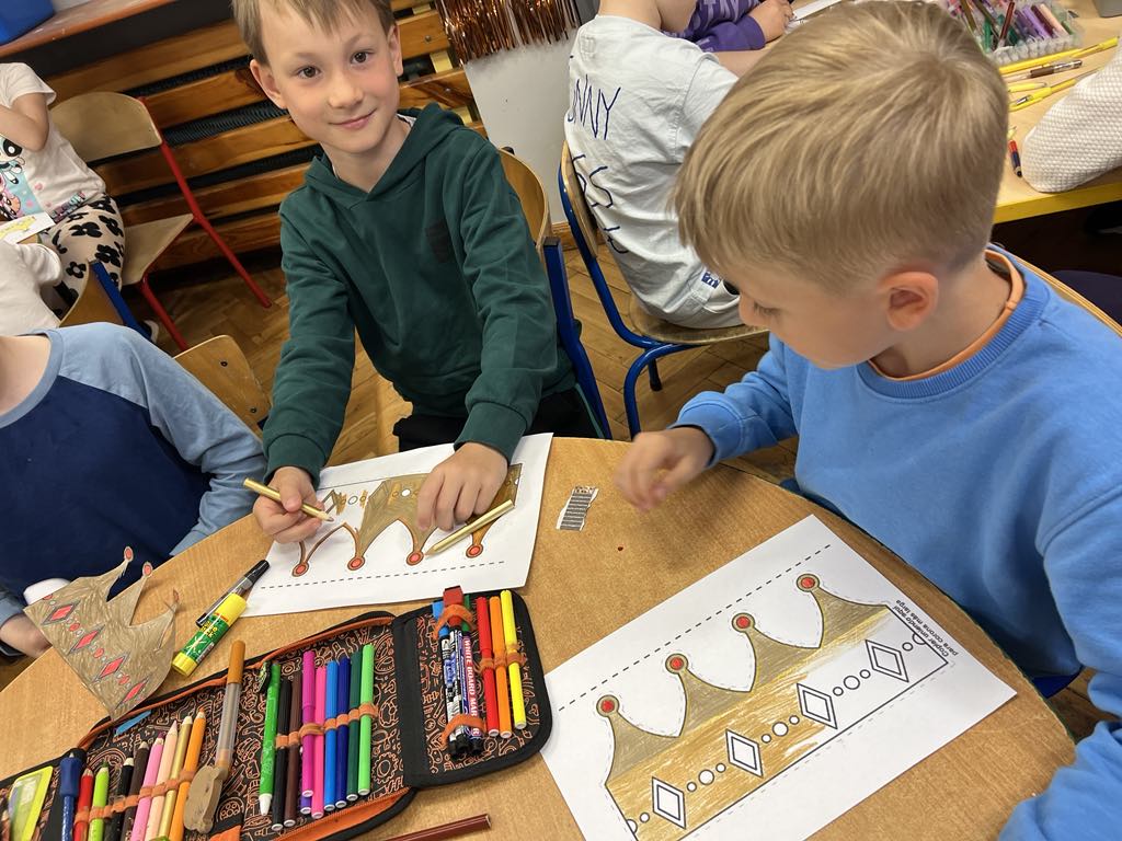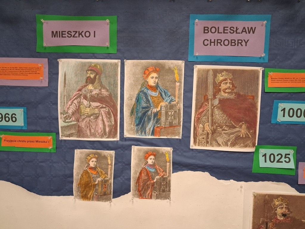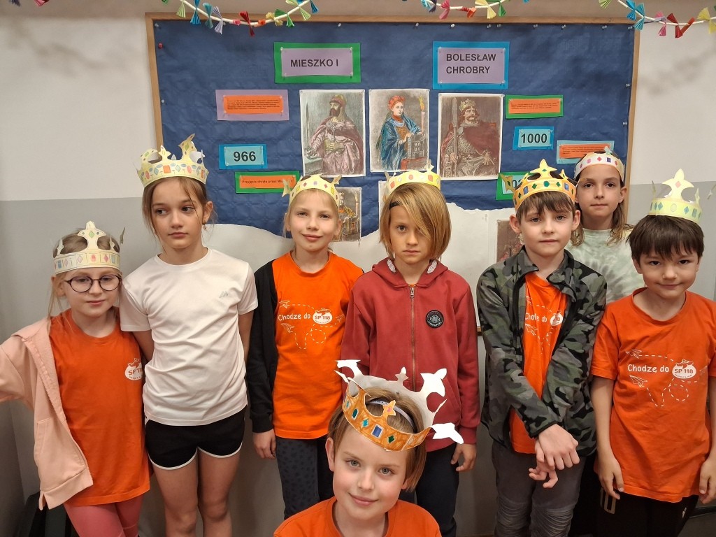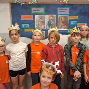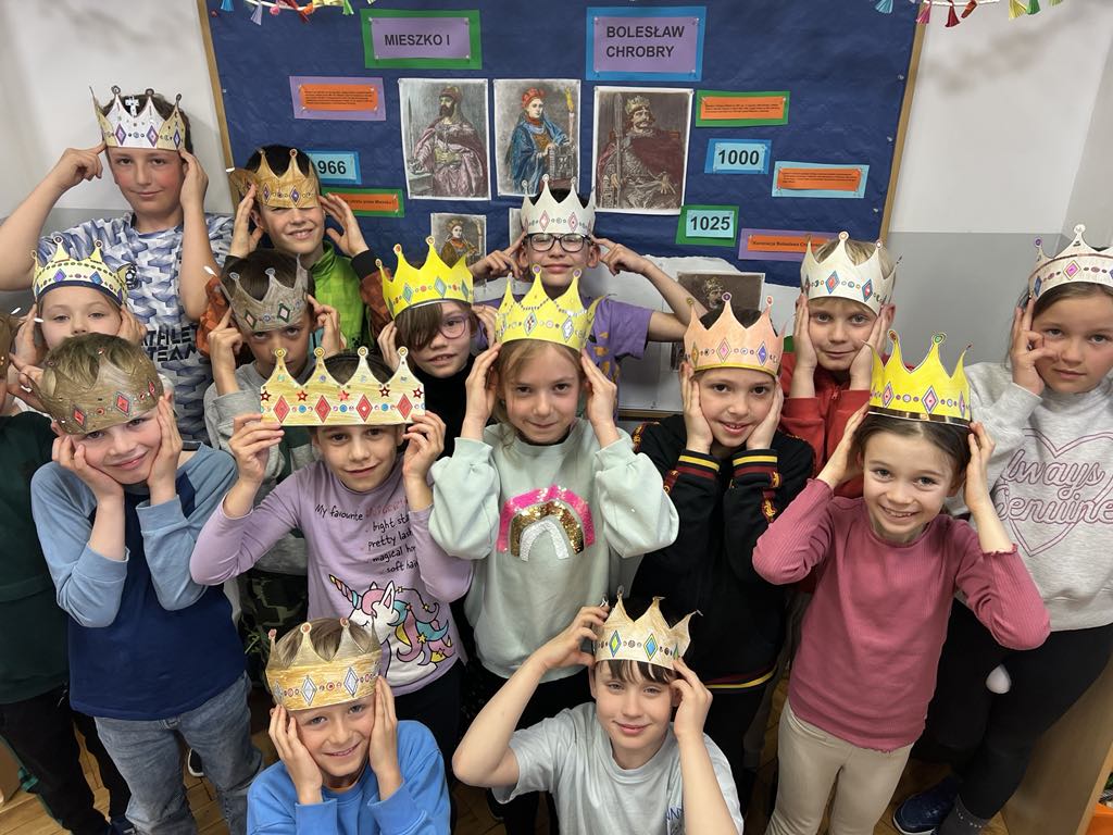 Kwiecień to miesiąc szczególny dla historii naszego kraju. Czy wiecie, że w tym roku łączy ze sobą dwie ważne rocznice – Święto Chrztu Polski oraz wyjątkowy jubileusz 1000-lecia pierwszej koronacji? Uczniowie ze świetlic klas 1c ,2a, 2d włączyli się w obchody tych dni poznając historię początków państwa polskiego. Wykorzystaliśmy zasoby Muzeum Historii Polski – w klimat Polski sprzed tysiąca lat wprowadziło nas słuchowisko “Piastodzieje” i prezentacje multimedialne. Rozmawialiśmy jak te wydarzenia wpłynęły na kształt naszej kultury i jak Jan Matejko ukształtował nasze wyobrażenie na temat wyglądu królów. Wykorzystując potencjał AI uczniowie mieli wyjątkową okazję porozmawiać z Mieszkiem I. Historia ożyła dzięki nowoczesnej technologii.