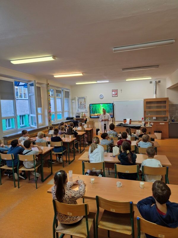 Podczas spotkania uczniowie zamienili się w prawdziwych młodych chemików. Samodzielnie przygotowali własne świeczki zapachowe, a przy tym mogli obserwować różne zjawiska chemiczne, m.in. reakcję egzoergiczną. Była to okazja nie tylko do nauki, ale także do rozwijania kreatywności, współpracy w grupie i uważnej obserwacji procesów, które na co dzień pozostają dla nas niewidoczne.