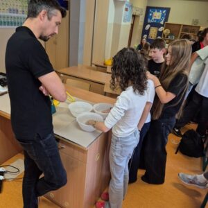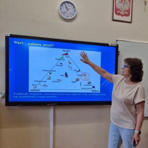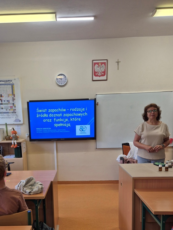 Kolejnym przystankiem w naszej naukowej podróży był „Świat zapachów”, którego tajniki zdradzała naszym uczniom pani dr hab. inż. Renata Siedlecka, prof. PWr. Podczas tych zajęć uczniowie klas 7b i 8d odkrywali, jak bogaty jest świat aromatów, które codziennie nas otaczają.