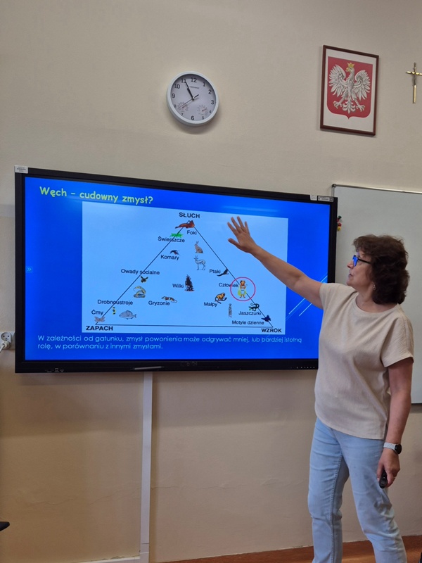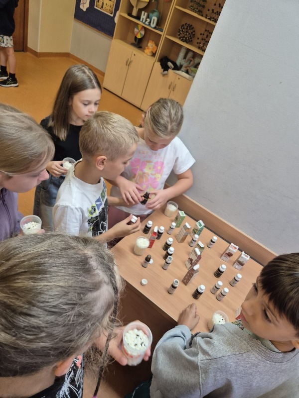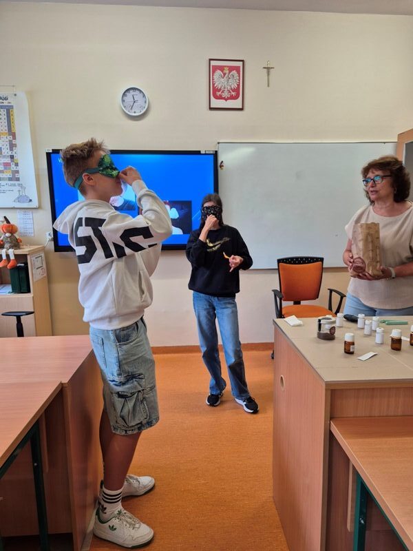 Podczas warsztatów uczniowie mieli okazję testować różne zapachy i sprawdzać, jak zmysł węchu reaguje na słodkie, świeże czy ostre aromaty. Dla wielu było zaskoczeniem, jak czasem trudno rozpoznać znajomy zapach, gdy nie widzi się jego źródła.