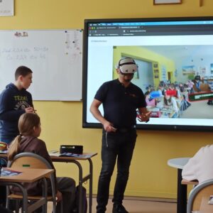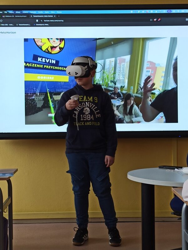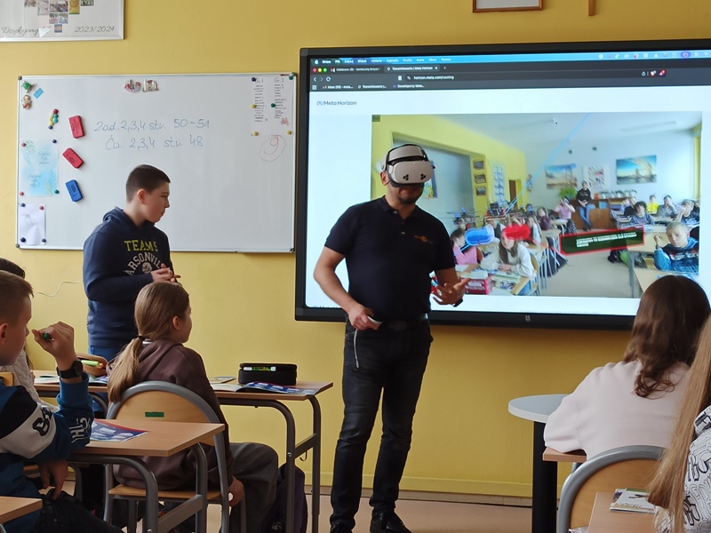 Uczniowie wzięli udział w scenkach dotyczących konfrontacji dziecka z dorosłym podszywającym się pod koleżankę (spoofing), rozmawiali o tym, jak rozpoznać manipulację oraz jak zareagować. Uczyliśmy się również budować silne hasła oraz dowiedzieliśmy się na czym polega działanie menedżera haseł. W zajęciach wykorzystane zostały najnowsze technologie – gogle VR.
